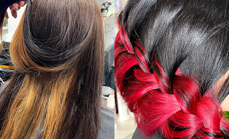 Wait 48 hours to let the color fully set – especially with vibrant shades. Use sulfate-free shampoo and lukewarm water to keep your hue bold. We’ll send you home with a sample to start right.
